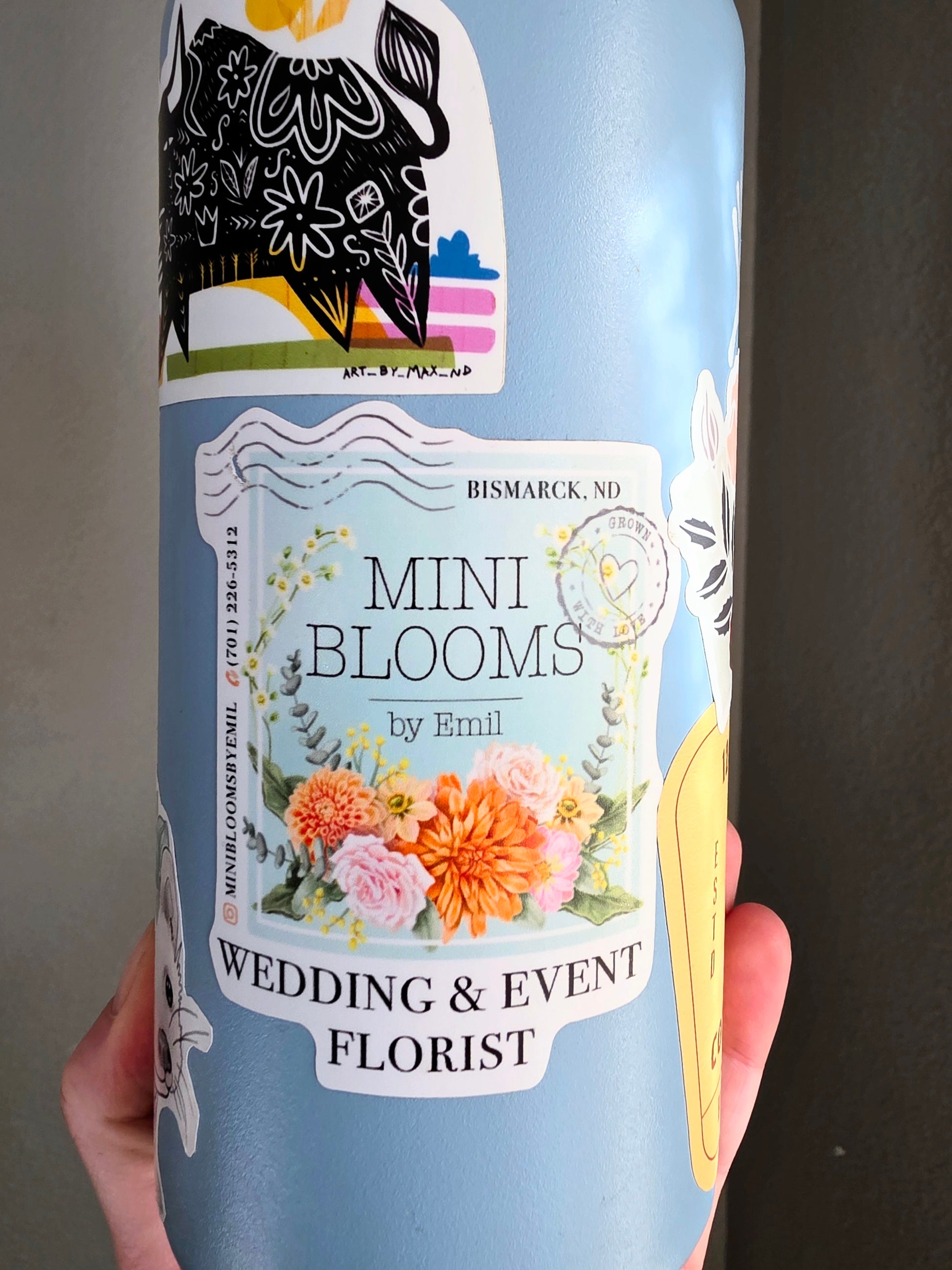 Waterproof! Perfect for any water bottle, phone case , cooler or anywhere anywhere you want to support Mini Blooms by Emil
